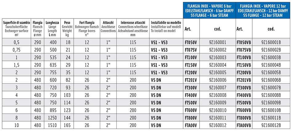 KIT SCAMBIATORE A FASCIO TUBIERO A VAPORE INOX AD “U” PER SERIE VS1 – VS3 – VS DN (PER SMALGLASS, SMALTECH, SMALVER, INOX) Completo di testata zincata con connessioni, guarnizioni e bulloneria.