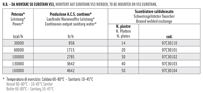 Kit di scambio a piastre saldobrasate in acciaio inox AISI 316L per l’accumulo di acqua calda sanitaria