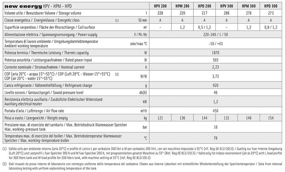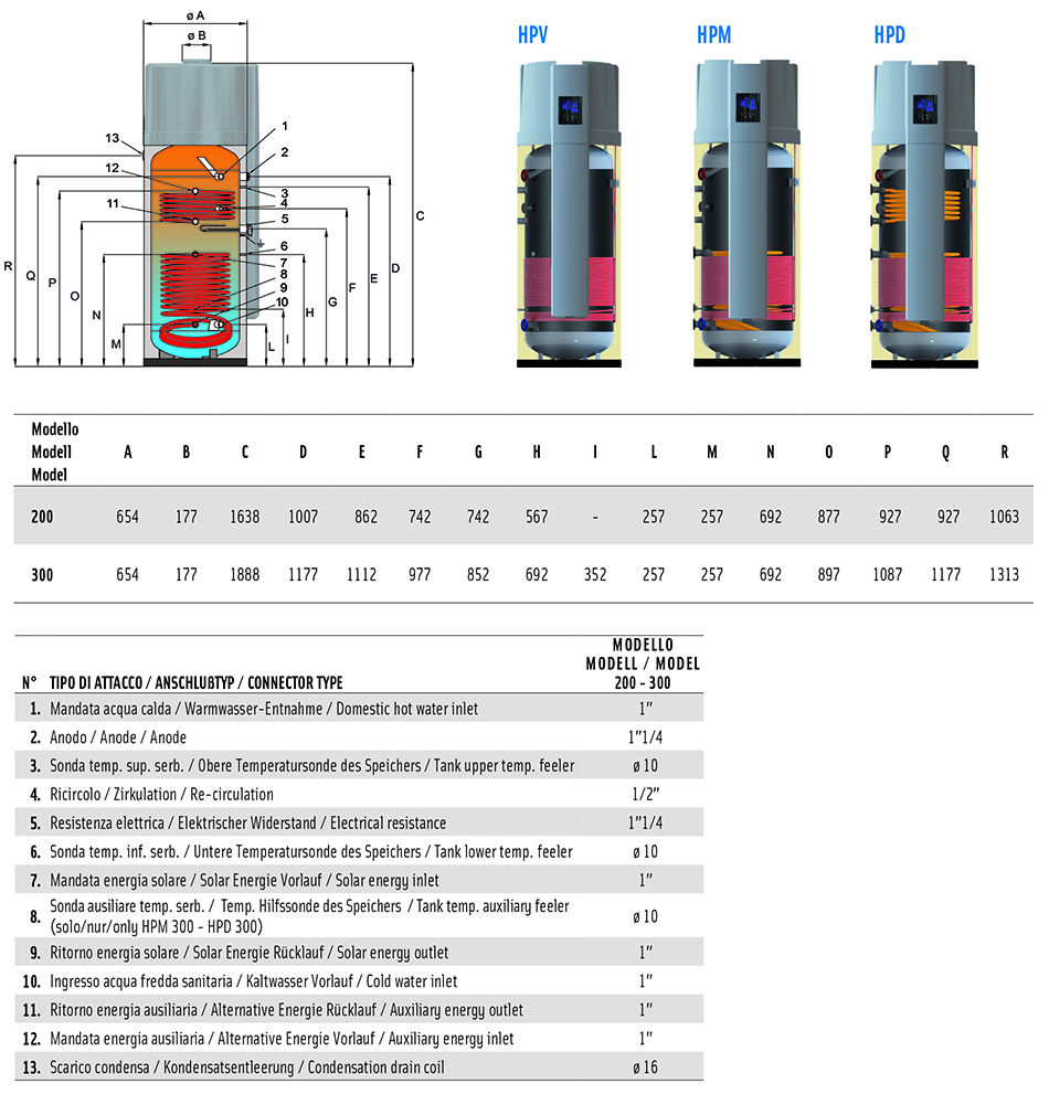 HPV standard che prevede la pompa di calore e la resistenza elettrica come fonti di riscaldamento.